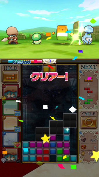 ただ、バトルシーンでのテトリス®操作は、ブロックの影を見ながらタップで位置を決めて落とすため、昔ながらのテトリス®経験者はやや戸惑うかもしれません。そのほか人気のRPGには、パズル&ドラゴンズや魔法使いと黒猫のウィズがあります
